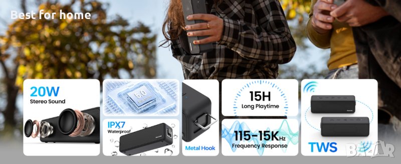 🎶HiFi звук: С доказана технология за обработка на аудио DSP чип, 30 W драйвери с двоен високоговорител и по-мощен усилвателен модул, преносимите високоговорители осигуряват равномерен, балансиран звук без изкривяване.