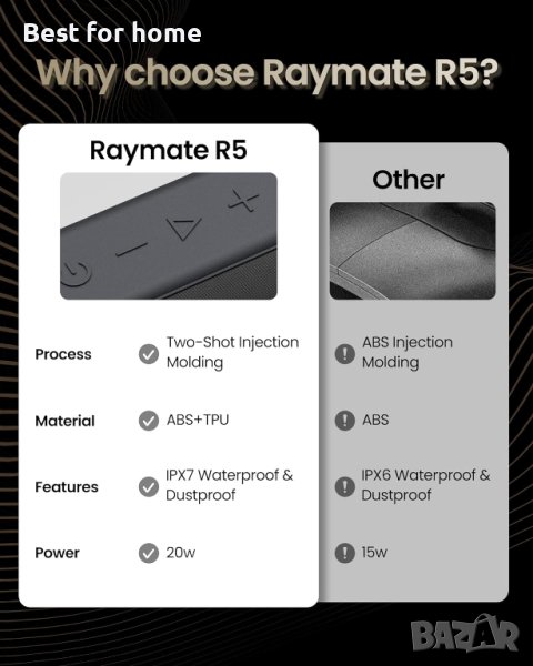 Висококачествена мощна колона Raymate R5 IPX7 Waterproof Portable Bluetooth speaker - R5