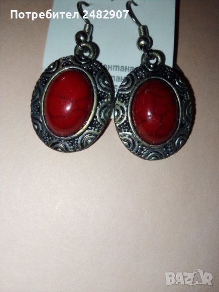 Красиви модни дамски обеци с червени камъни. Дължина - 3,5 см. Чисто нови, не са използвани.