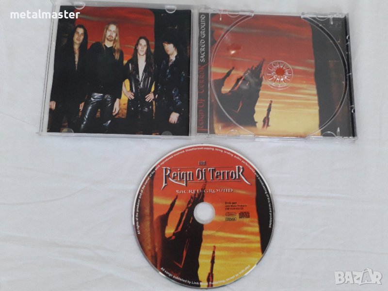 The Reign of Terror - Sacred Ground 2001 - USA, Power Metal. Състоянието на диска е отлично, обложките и кутията са без забележки. С книжка 4 стр. Цената е крайна и не подлежи на коментар! Телефон не винаги мога да вдигам, затова за връзка за предпочитане е личното съобщение. При желание мога да направя повече и по-детайлни снимки.