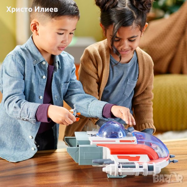 Изстреляйте се във вълнуващи приключения с комплекта превозни средства Star Wars The Crimson Firehawk! Тази предучилищна играчка за момчета и момичета включва превозно средство, фигурка на дроид RJ-83 и малка екшън фигурка Nash Durango - любим герой от анимационния сериал на Disney+, Приключенията на младите джедаи. Тези 4-инчови фигури от Междузвездни войни се побират на различни места около този комплект за игра от Междузвездни войни, като пилотската кабина, сенника и зоната за съхранение на товари отзад. Crimson Firehawk разполага и с крила, които се сгъват нагоре и надолу, както и сгъваема рампа за допълнително пространство за игра. Мини екшън фигурки, плюшени играчки и превозни средства от колекцията Young Jedi Adventures на Hasbro са перфектният подарък за Star Wars за деца в предучилищна възраст! (Допълнителни продукти, всеки от които се продава отделно. В зависимост от наличността.) Продуктите на Star Wars се произвеждат от Hasbro по лиценз на Lucasfilm Ltd. Hasbro и всички свързани термини са търговски марки на Hasbro.