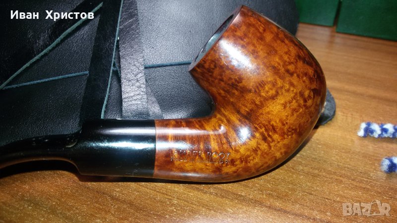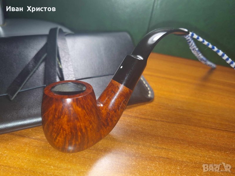 Лулата сe продава в комплект с много стилно калъфче от естествена кожа, което е в отлично състояние, като ново и придава допълнителна тежест и пълнота на тази красива и рядка лула. Това че лулата се продава с калъфче е предимство, защото в него лулата се съхранява отлично, така тя е по-подходяща за подарък, а и е много удобно и практично, когато искате да вземете лулата с вас, когато излизате навън,защото ще бъдете сигурен, че лулата няма да се надраска независимо дали сте я сложили в джоба си или в чантата си.Размери: дължина - 12,0 см.; височина на чашата - 4,5 см.; дълбочина на чашата /огнището/ - 3,5 см.; външен диаметър на чашата при ръба - 3,0 см.; вътрешен диаметър на чашата /огнището/ - 1,8 см.; тегло само - 42 гр.Лулата е красива, удобна, качествена и в прекрасно състояние, изглежда като нова. Тази лула пуши леко и приятно, както всички лули от марката DUNHILL и ще ви носи винаги много наслада с лекото и хладно пушене и красивата шарка на Бриара. Лулата е използвана само няколко пъти и за това е много запазена, доказателство за това е цялостния прекрасен външен вид на лулата и отличното състояние на нейното огнище, което е като при нова лула.