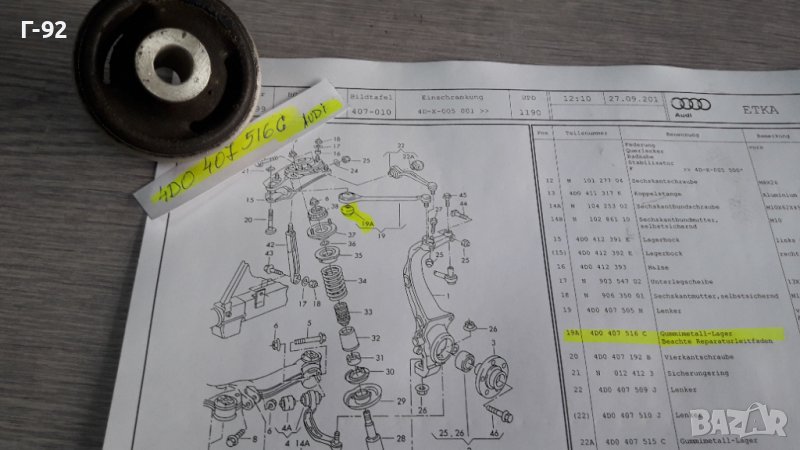 4D0407516C**NEU**AUDI**A8**1994-2003**Тампон за носач**