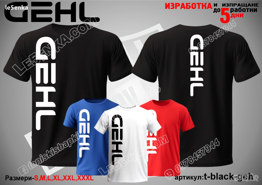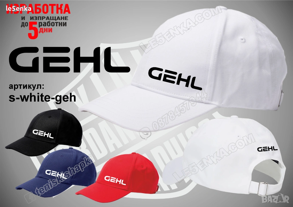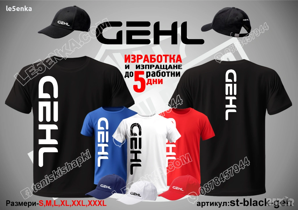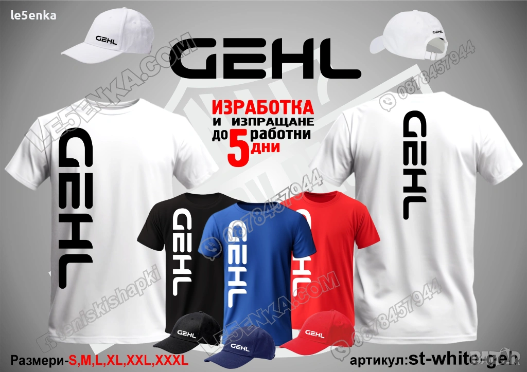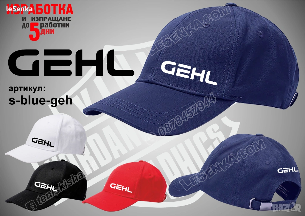 Посочената цена е за шапка и тениска комплект. Само шапка - 18 лв. ,а само тениска - 32 лв. Тениските са изработени от качествена памучна материя - различна номерация и цветове - черен, син, червен и бял. Шапките са памучни с метален клипс или коланче за регулиране - тип бейсболни. Последната снимка в обявата е на таблица с размери за тениските. Изпращаме по Еконт.