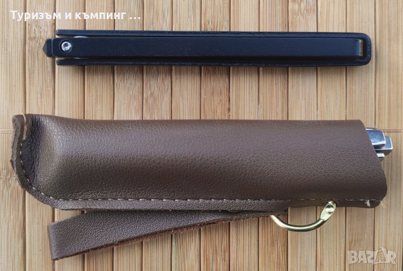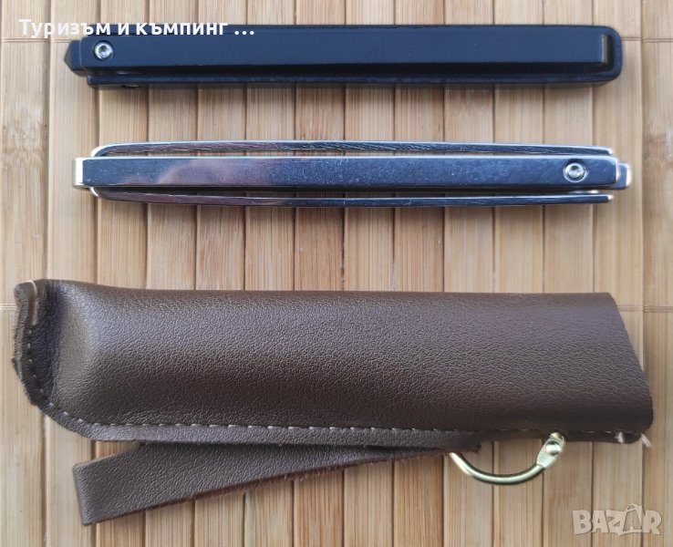 Ножчето е в 2 цвята - металик и черен и е с кожено калъфче.