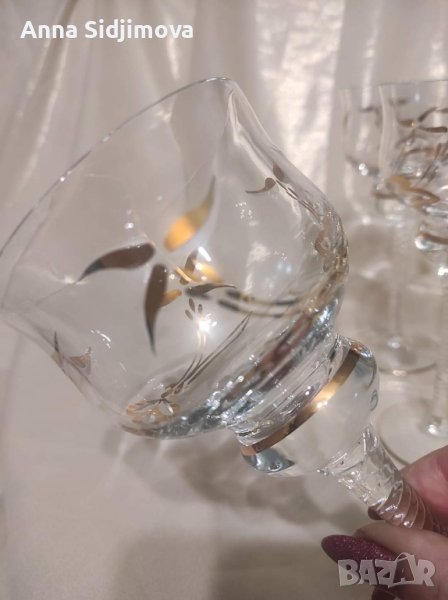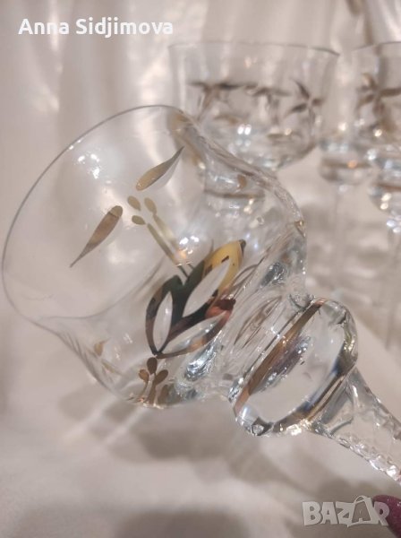 🌟Представям ви изключително красив сервиз за вино със златни листа и кантове, изработен от калиево стъкло
