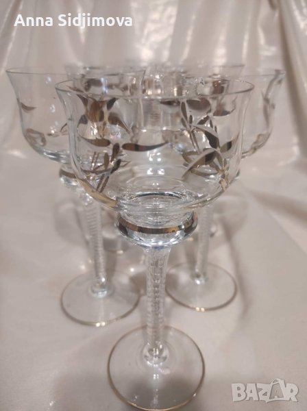 🍷 **Уникален Винтидж Сервиз за Вино с Ръчно Рисувано Калиево Стъкло**