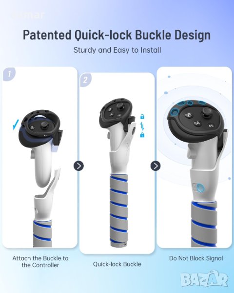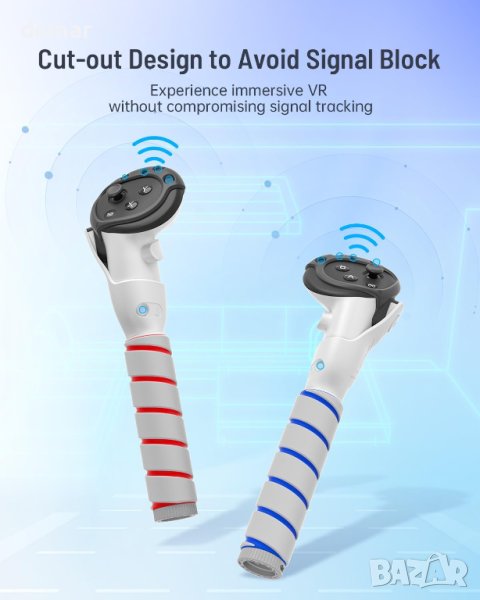 Разширения за контролер 3 в 1 за контролери Meta Quest 3. Тези разширения предлагат три гъвкави режима за вашите VR игрови нужди: Double Stick Mode, Golf Club Mode и Long Handle Mode. С патентован дизайн на катарама с бързо заключване, те се закрепват сигурно към контролери Quest 3 за лесна настройка. Цялостният и изрязан дизайн подобрява защитата и осигурява непрекъснат сигнал. Освен това се насладете на подобрен комфорт и захващане с меки, неплъзгащи се покрития от пяна. Инсталирането е лесно и те са съвместими изключително с контролерите Meta Quest 3, осигурявайки безпроблемно игрово изживяване.
