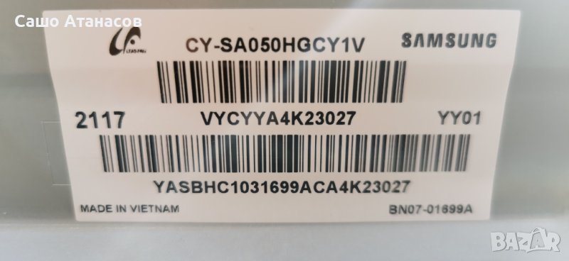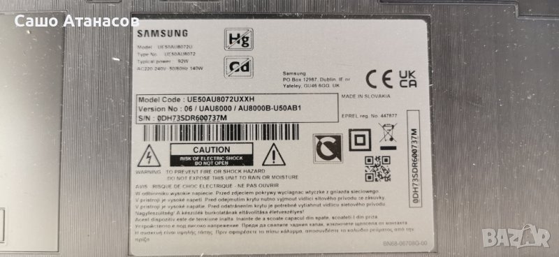 SAMSUNG UE50AU8072U със счупена матрица ,BN44-01110A ,BN41-02844A ,CY-SA050HGCY1V ,WCA734M