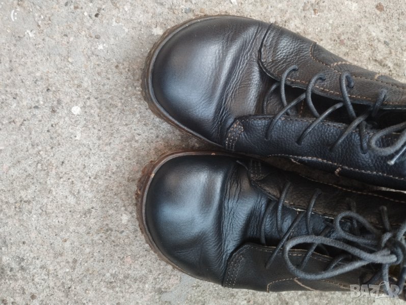 Ботите са носени с нормални следи от употреба.Нямат скъсано или протрито.Черен цвят,мека естествена кожа.Вътрешната част на ботите се е боядисала от езичето им./има снимки/.Номер 38 с дължина на стелката 25см.Цена 50лв,заради състоянието им.