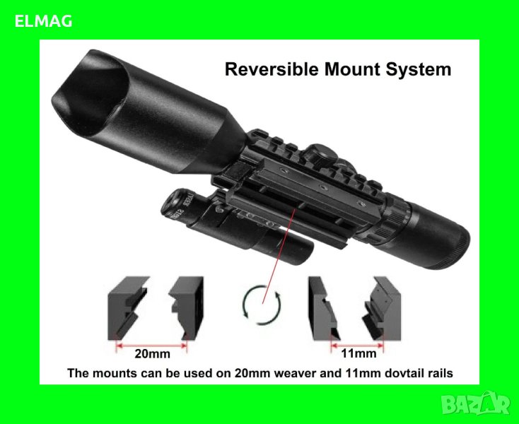 * Тип на монтиране : Реверсивно 20 мм уивър/пикатини или