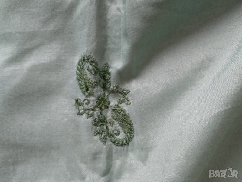Пролетният шал е също от изключително приятна материя,пастелно зелено,с акцент бродерия