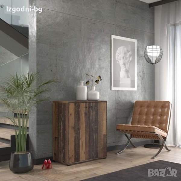 Компактен винтидж скрин с размери Ш:73.7/Д:34.8/В:85.5 см. Притежава красива визия и стил, удачно декориран в светло тъмен дървесен декор. Моделът се състои от едно отделение с две врати на панти, зад които са монтирани два вътрешни рафта с размери Ш:73.7/Д:34.8 см