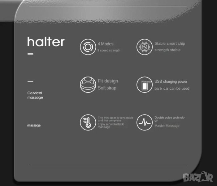 Действа в ключови точки на врата, шията и гърба, независимо или едновременно, като осигурява приятно усещане за отпускане и релакс.