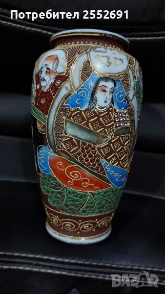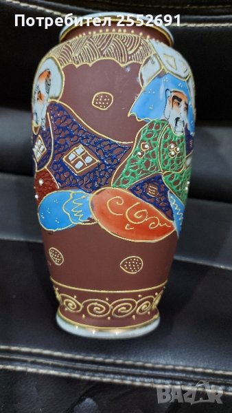 Релефна, ръчно изрисувана порцеланова ЯПОНСКА ваза. Наличие на фирмен знак. Височина- 15см.