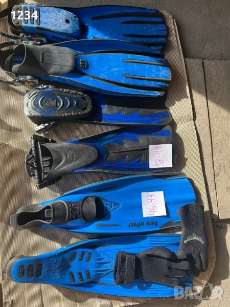 Плавници Марес .Туса s 50 лв.Аквалунг 44 -45 за 40 лв.Маски ,шнорхели ,каишки за плавници