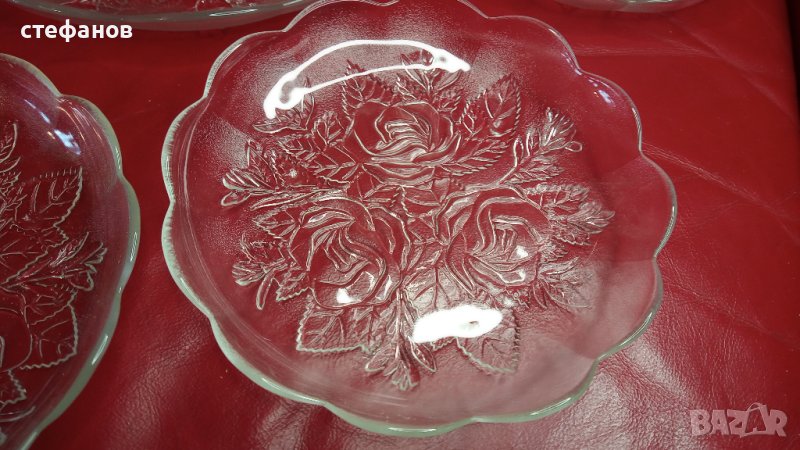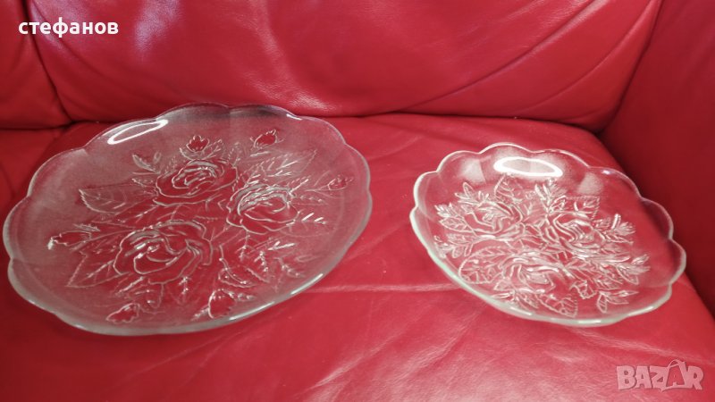 Комплект от голяма чиния за торта и 6 малки, стъклен → Обява 43625622