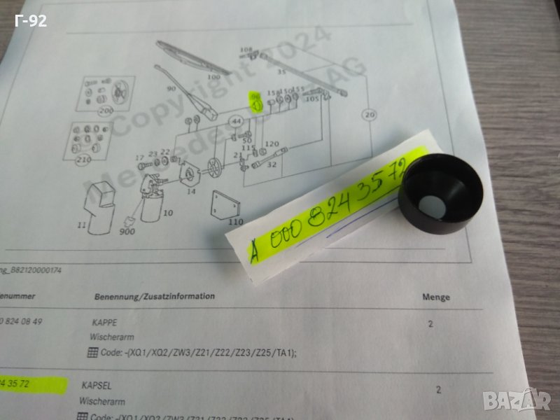 A0008243572**NEU**MERCEDES-BENZ**W460-461-463**КАПАЧЕ ЗА ОСТА НА ЧИСТАЧКИТЕ**