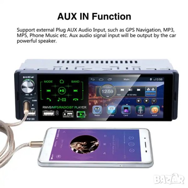 Голям дисплей 4.1’’инча HD 1080P Stereo FМ Player + Bluetooth.