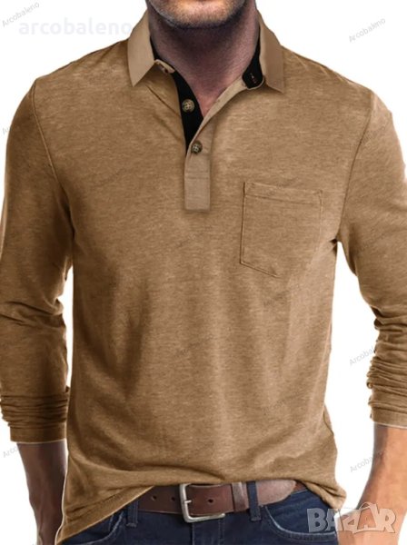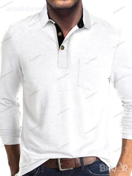 Модна мъжка тениска с дълъг ръкав и ревер, 6цвята