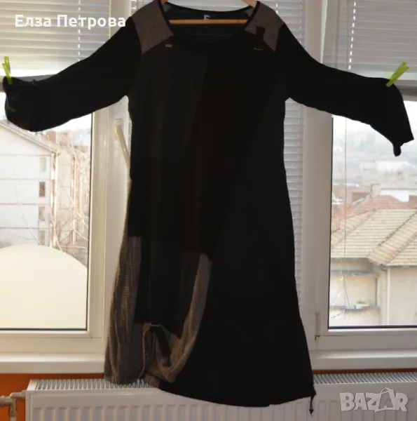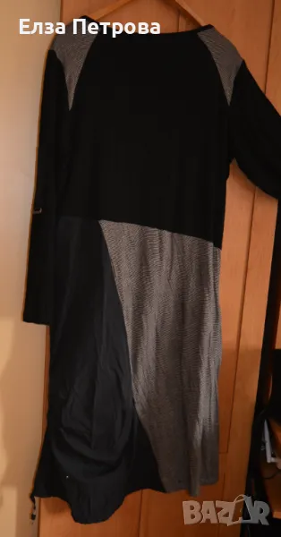 Over size: 2XL÷3XL; БГ № 50÷52. Гръдна обиколка 112 см, талия 108 см, ханш 126 см, ширина от рамо до рамо 41 см, дължина на ръкава от подмишницата 46 см, дължина на роклята 107 см. Много удобна и мека, в перфектно състояние е. Обличана е два пъти, по повод. Продавам я защото не ми става. Изпращам чрез Еконт/Спиди до офис/до адрес посочен от получателя, с 10% отстъпка на куриерската услуга, с опция преглед и тест преди заплащане.