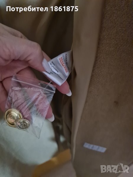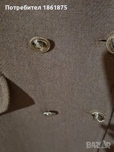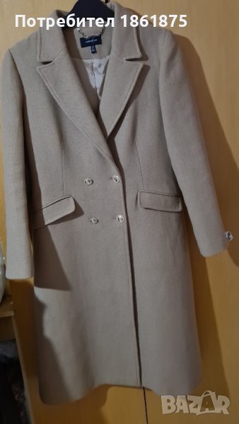 Чисто ново оригинално дамско палто, уникална кройка, бежов цвят, размер UK 12, отговаря за М/Л размер
