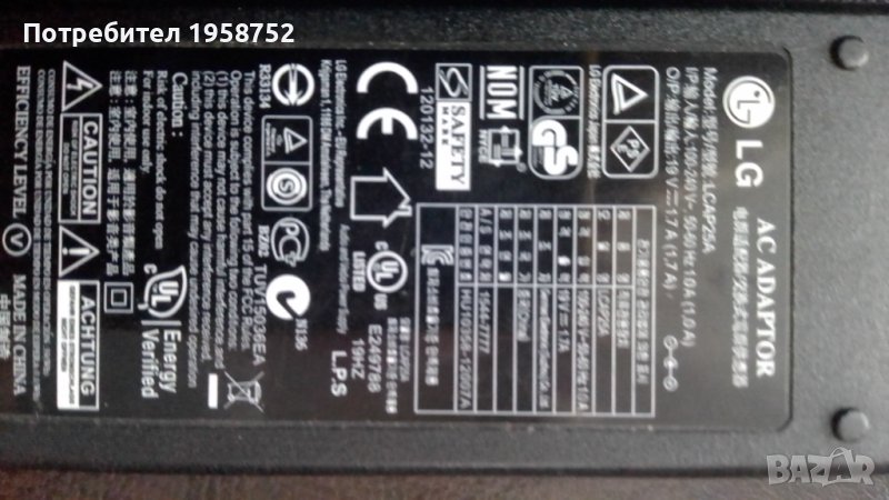 LG AC adapter LCAP25A 19v =1,A7 → Обява 43635977