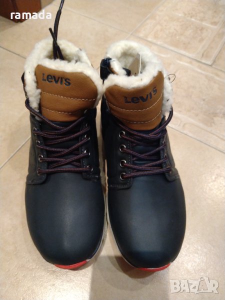 Нови сини, топли, боти за момче, номер 30 . Марка Levi's .Купувани са по рано и след кратка разходка се оказа,че са ни малки. Стелка 18 см. Забележка драскотина на последната снимка