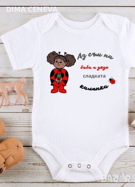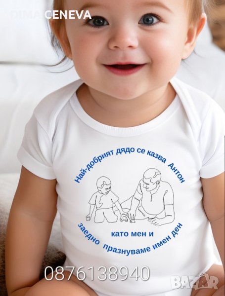 Бебешко боди или детски тениски. Пътечки за прохождане, месал за погача, календар за снимки на новородено, хавлии за ктъщене. Одеяло с персонализация.