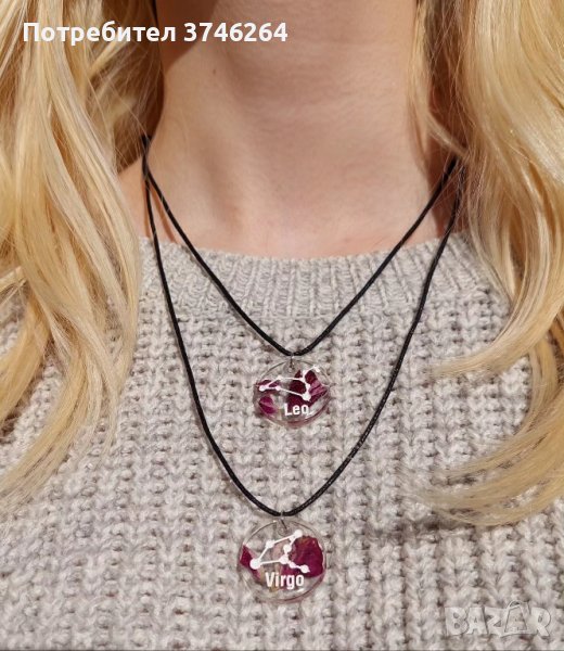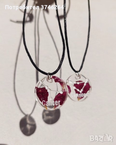 Продавам изцяло ръчно изработени астрологични герданчета. Направени са от епоксидна смола и листенца от розичка. Верижката е възел, който позволява стесняване/уголемяване.