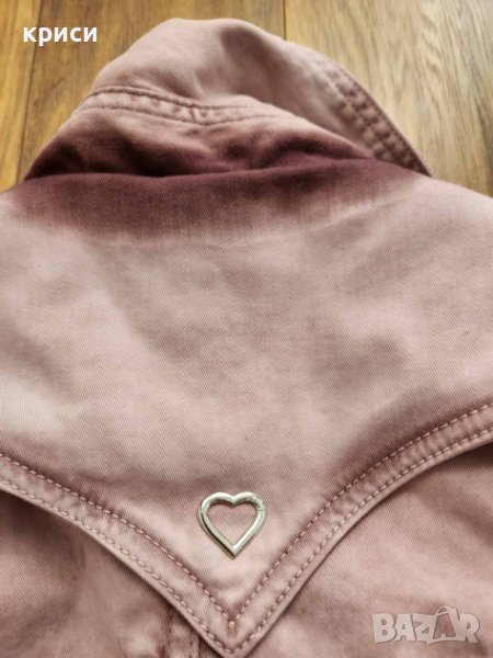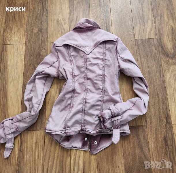 Дамско яке на марката Please цвят преливащ пепел от рози S размер.Моделът е втален.Дължина 51см, гръдна едностранно 38см., ръкав дължина 64см.Материята е памук и еластан.