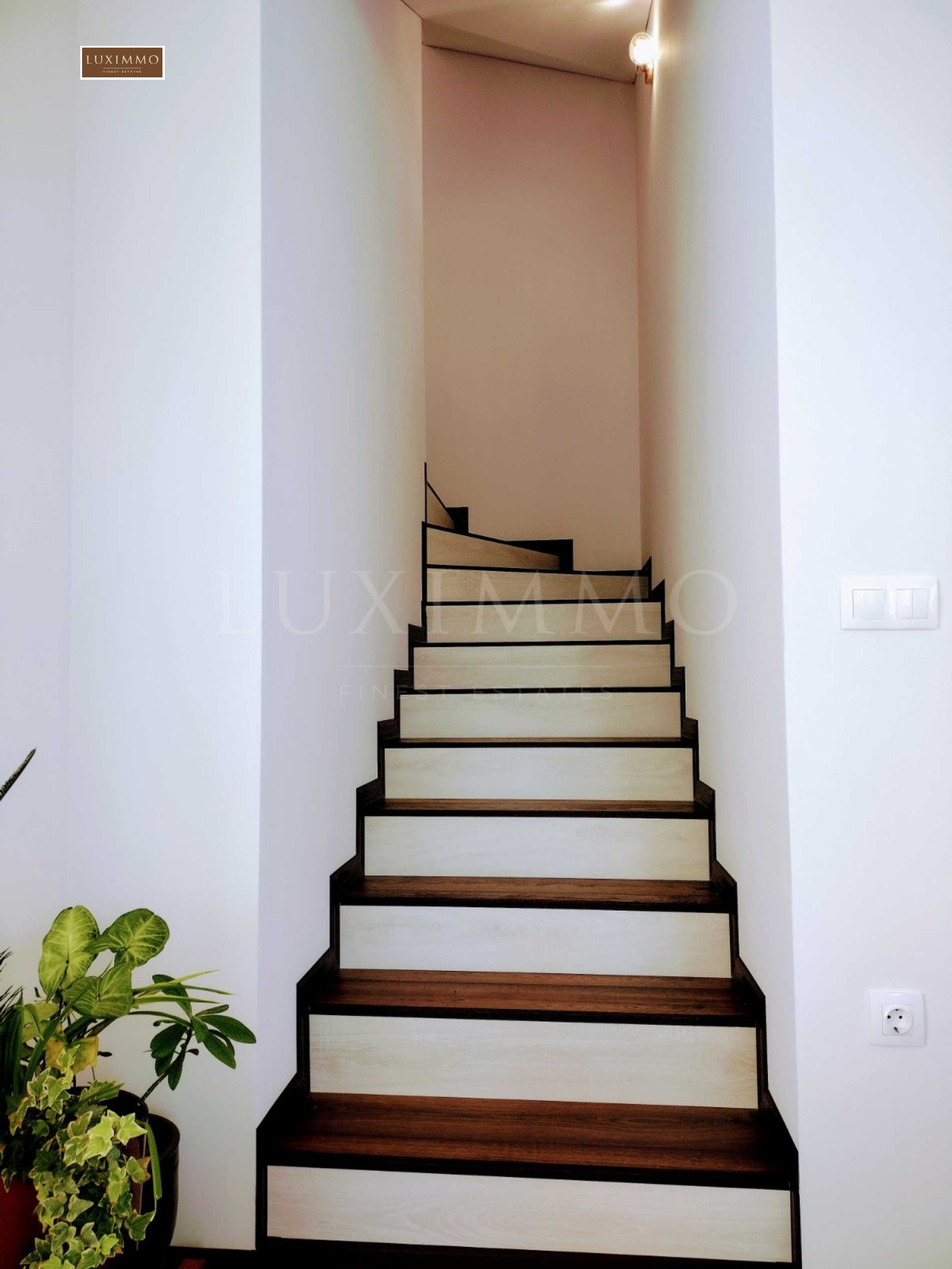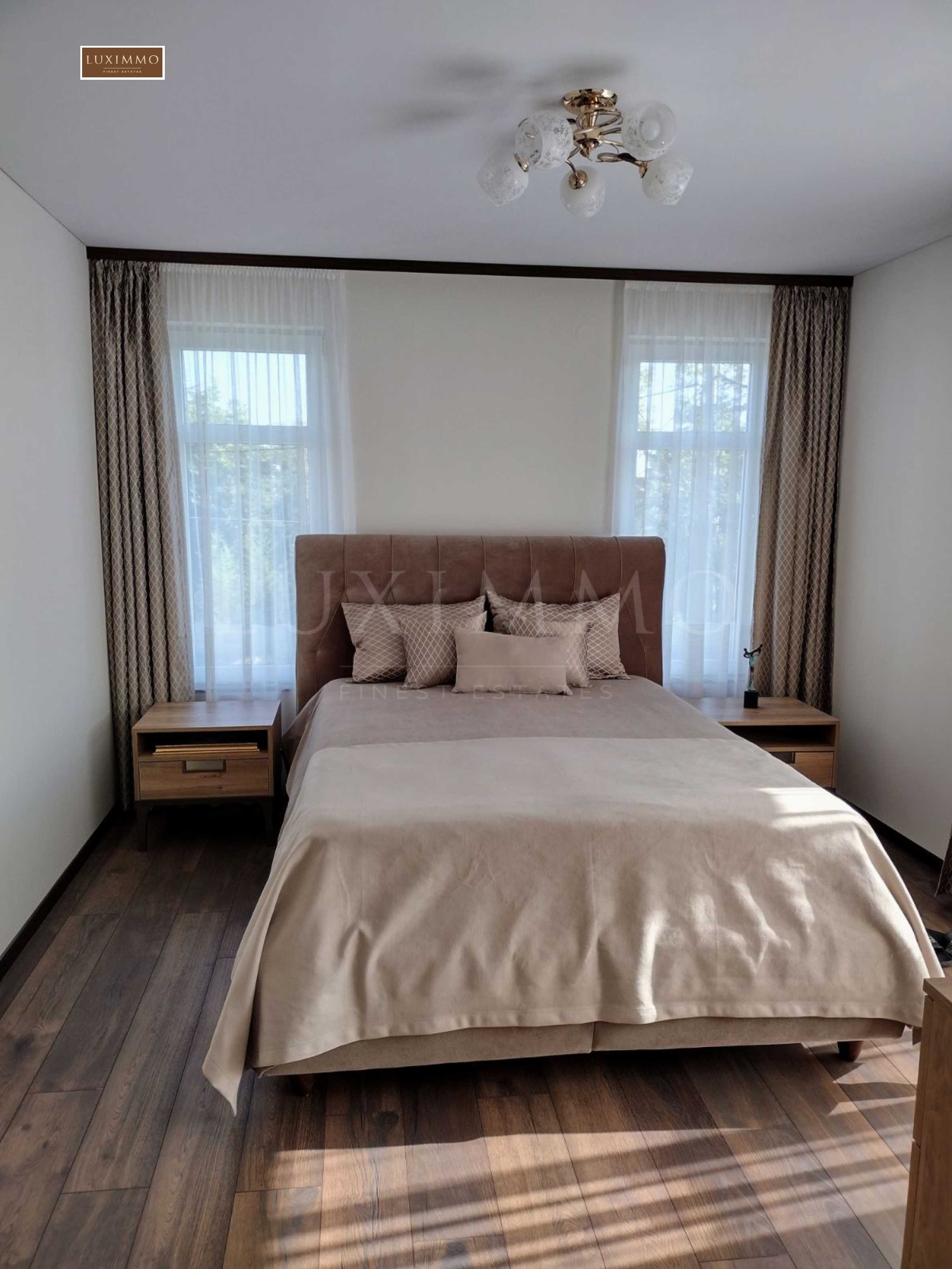 Имотът с РЗП 270 кв.м разполага с озеленен двор с поливна система, кът за релакс и две паркоместа с автоматизирани врати.