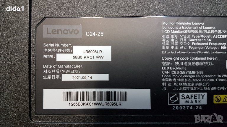 монитор Lenovo c24-25 за части, снимка 1 - Монитори - 43643541 монитор Lenovo c24-25 за части, снимка 2 - Монитори - 43643541 монитор Lenovo c24-25 за части, снимка 3 - Монитори - 43643541 монитор Lenovo c24-25 за части, снимка 4 - Монитори - 43643541 1/4