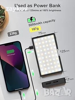 Не се притеснявайте за захранването: Благодарение на включената литиева батерия, не е нужно да носите LED DSLR с тежки батерии, вместо да го захранвате с USB кабел. 50 000 часа живот и повече от 500 пъти жизнен цикъл. Показва се остатъчната мощност