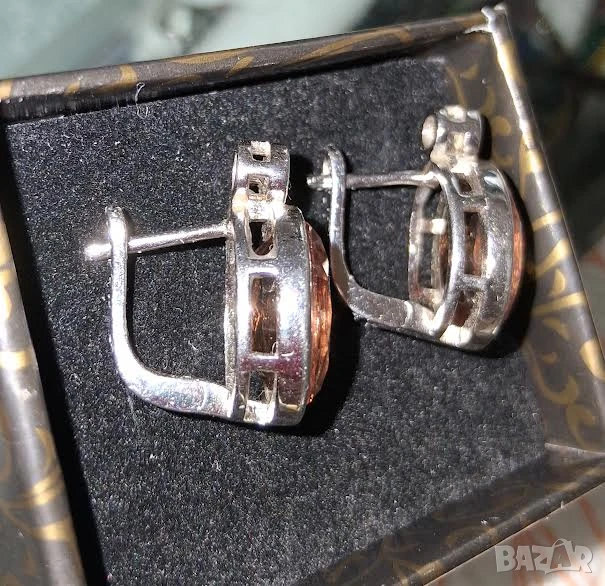 Налични маркировки 925 . Големината на камъка е 15/18мм. Обеците са с английско закопчаване. Това е камък, който притежава невероятното свойство да променя цвета си в зависимост от светлината. Така например, когато е тъмно, цветът му е кехлибарено-кафяв . На обикновена вътрешна светлина придобива зеленикави нюанси, а огрян от слънчева светлина става медено червен. Изключително интересен и своенравен камък, който е доста подходящ за дамите, обичащи разнообразието и разчупената визия. На практика в три различни етапа на деня ще изглежда, че сякаш носите три различни бижута.