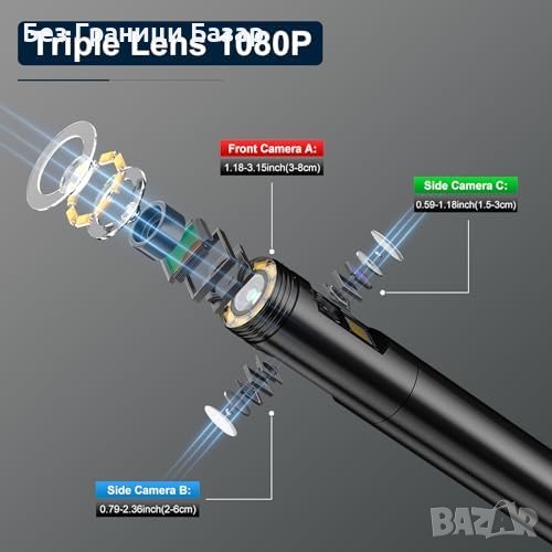Тройно-обективна камера: ILIHOME T27 с три обектива за различни перспективи, улесняващи инспекцията.