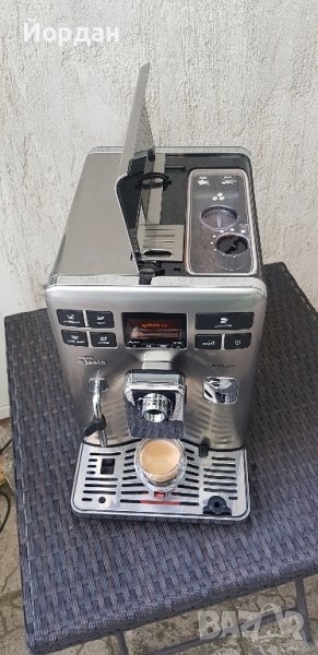 Saeco Exprelia кафе машина гигант в лукса на добро и качествено приготвено кафе, капучино, латемакиато, топло мляко и др.Иноксово покритие.Меню на български език.Висок клас каферобот.Работи с кафе на зърна и мляно кафе.Made in ITALY.Цена: 400лв Надолу в описанието има клип !При интерес мога да изпратя още видео и снимки !ЦЕНАТА НЕ ВКЛЮЧВА КАНА ЗА МЛЯКО!- Машината може да се използва както с кафе на зърна така и с мляно кафе.- Подгряваща плоча за винаги топли чаши.- Перфектно състояние (рециклирана)- Енергиен клас А- Ръчна система за капучино (пара)- Гореща вода за чай.- След определен период на неизползване, машината автоматично се изключва.- Регулиране височината на диспенсъра за кафе.- Контейнер за кафе със специално уплътнен капак за максимално запазване на аромата и вкуса на кафето, капацитет - 350 грама.- Воден резервоар с филтър и капацитет 1,6 л.- Контейнер за отпадъчно кафе с капацитет 14 дози.- Автоматично включване и изключване.- Самопочистване при включване и изключване.- Самопочистване по всяко време.- Функция за почистване на котлен камък. (Декалциране)- Налягане на помпата: 15 бара- Размери: (ШxДxВ) - 280 x 370 x 420 mm- Тегло: 16 кг.- Мощност: 1450 (W)-Произведена в Италия. Функции: - капучино- Лате макиато- топло мляко- топла вода- регулиране на дължината на кафето с възможност за запаметяване на 4 различни настройки- регулиране на интензитета на кафето- възможност за работа и със смляно кафе- самопочистваща се кана за мляко(капучино)- sbs - допълнително регулиране на интензитета и каймака на кафето- регулиране на керамичната кафемелачка- seaeco adapting system (sas)мНЕ ПРАВИМ КОМПРОМИС С КАЧЕСТВОТО!