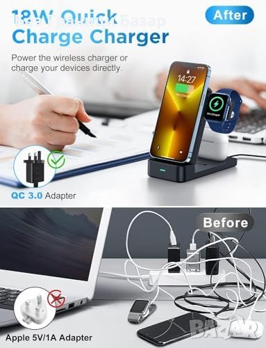 Нова Портативна Зарядна Станция - Съвместима с iPhone/iWatch/AirPods