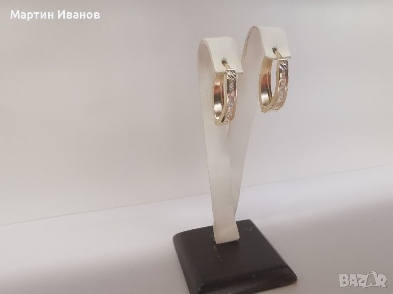 Златни обеци елипса с циркони → Обява 43646079