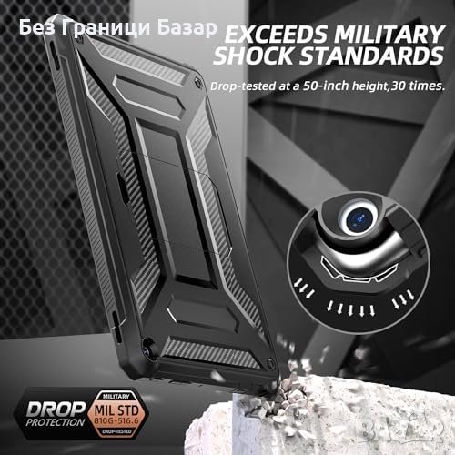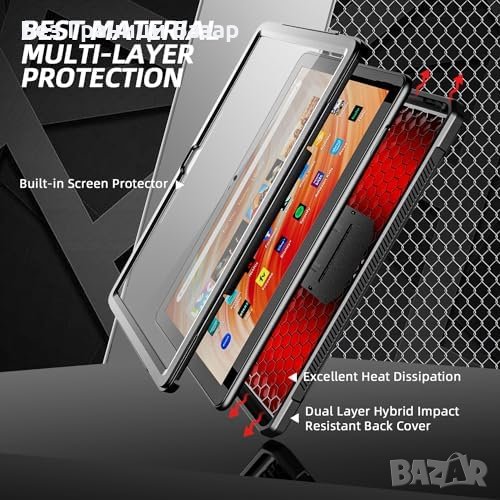 Нов Вграден Протектор, Стойка за Fire HD 10 (2023) - Черен Кейс