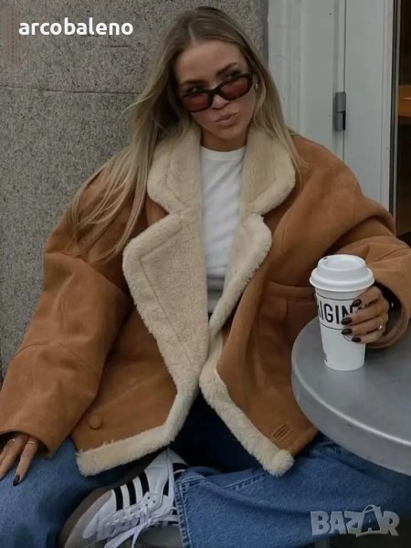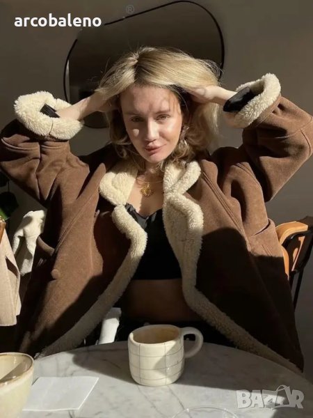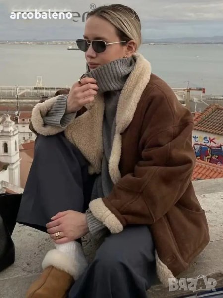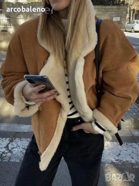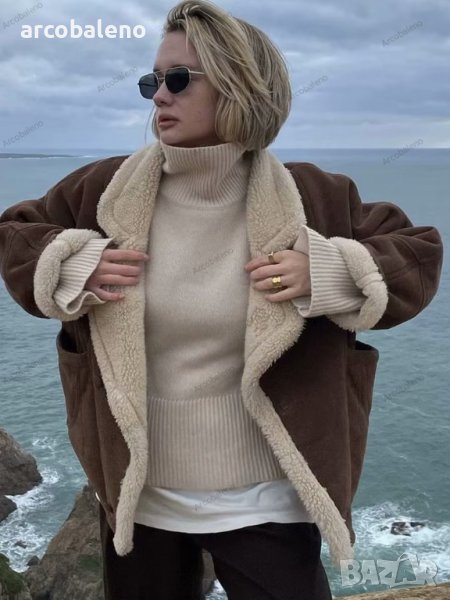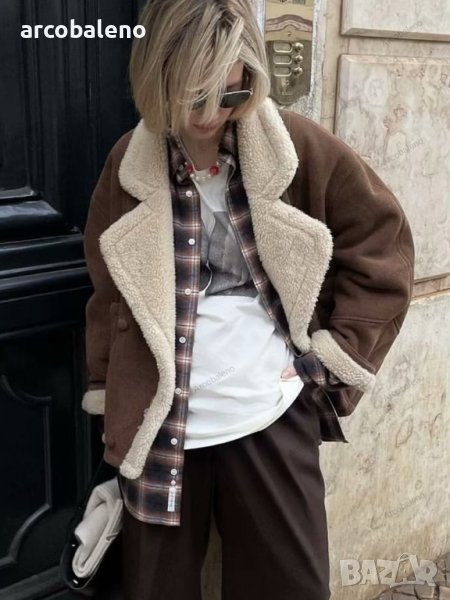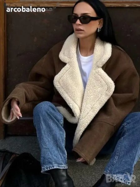 Ново дамско ретро ежедневно кожено яке от изкуствена агнешка вълна, 2цвята