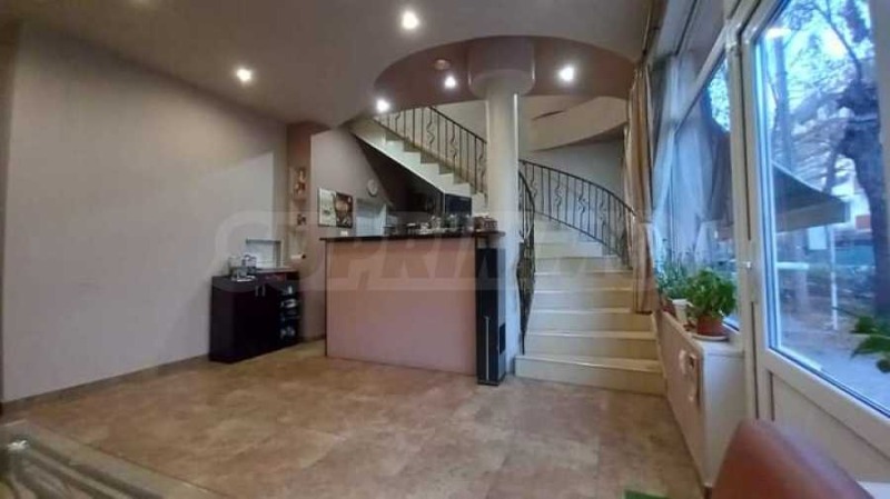 Второ ниво: Търговска част, две помещения подходящи за офис, фризьорски и козметичен салон, две санитарни помещения, 4 тераси.