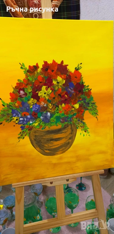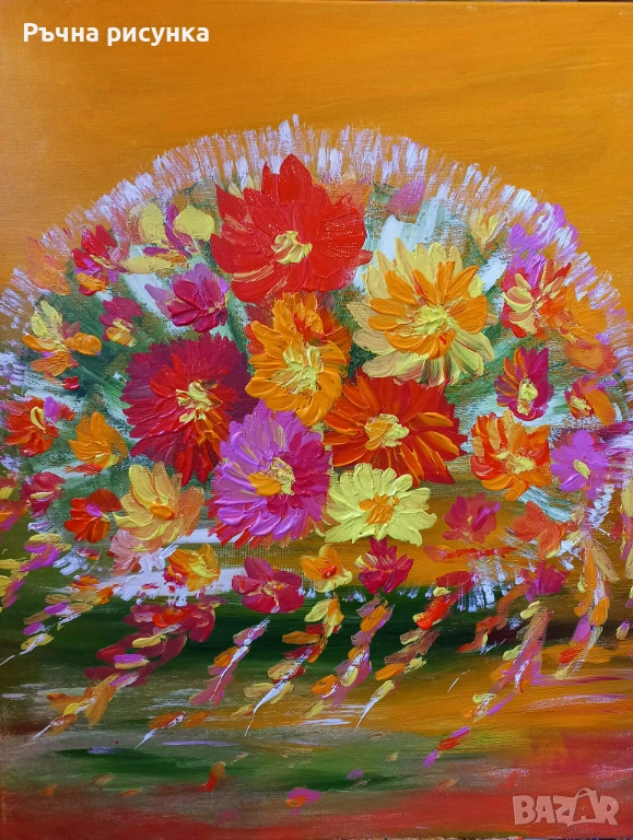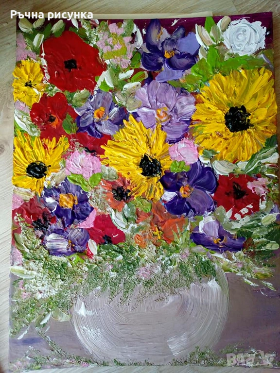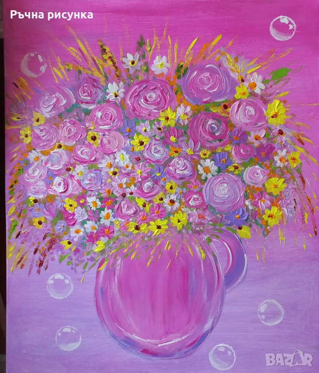Пета снимка-"Букет Фантазия "-60/60,акрил/масло на подрамка ,цена 100лв