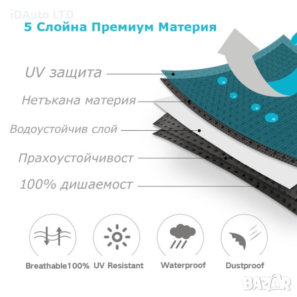 Водоустойчивата и паропропусклива структура предотвратява натрупването на влага и бори корозията, докато UV защитата предпазва от избледняване и матиране на боята. Независимо дали е зима, пролет, лято или есен, вашето возило ще бъде защитено от сняг, замръзване, дъжд, вятър, птичи изпражнения и цветен прашец.