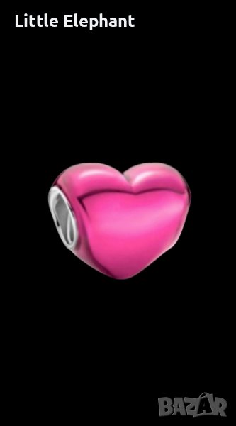 Сребърен елемент Пандора,розово сърце"Пламенна любов"/нов → Обява 43656209