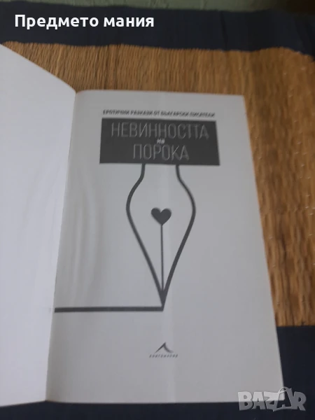 „Невинността на порока” е сборник, представящ подбор на автори и творби от литературното ни наследство, интерпретиращи вечната тема за Ероса... Любовта се отърсва от патриархалния „комплекс”, за да се разгърне в цялата си палитра: от моминската чистота и привличане през изгарящи душевно-плътски страсти до покварата и безумната убиваща сласт, от първичната невинност до стихията на сексуалната фантазия, превърната във фетиш. Включените в този сборник сюжети възбуждат интереса на читателя с това, което казват, но най-вече с това, което не доизказват. Книгата е използвана но е в много добро състояние. Език български. Корици меки. Брой страници 327. Доставка по Еконт