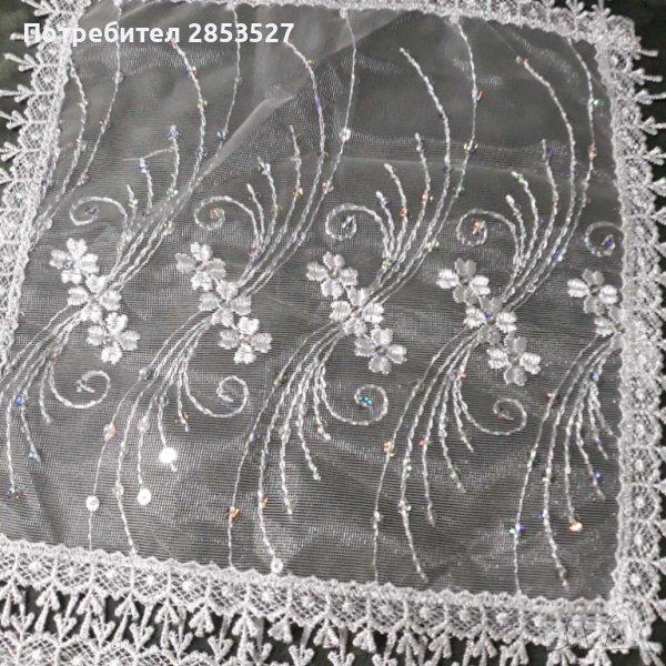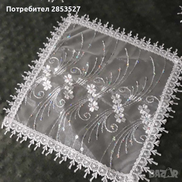Комплект от три броя бели карета,с бродирани мотиви и мъниста.