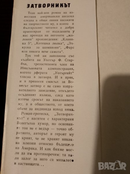 "Затворникът"- автор Кърт Вонегът ,един от най- известните американски автори,Издателство "Народна култура",250 страници, твърди корици + хартиена обложка