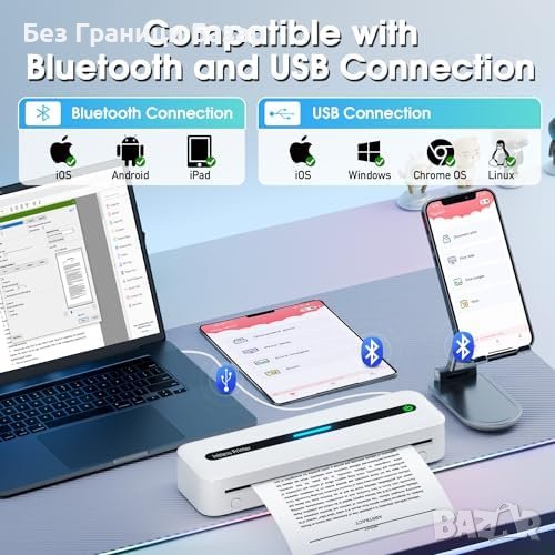 Удобство в Употреба: Bluetooth и USB, работи с Phomemo App