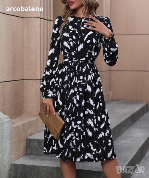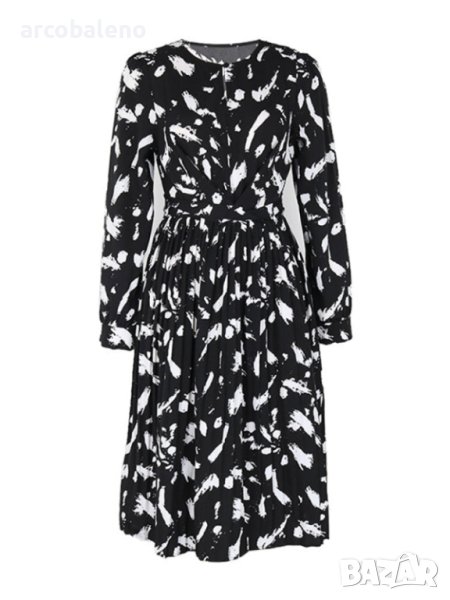 Дамска черна рокля с дълъг ръкав с нов темпераментен принт